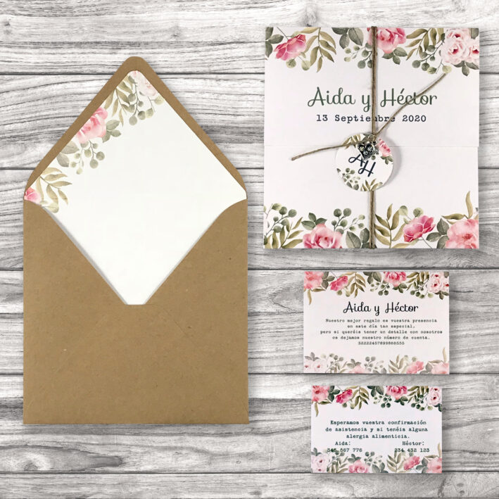 Tamaño de la invitación cerrada 15 x 15 cm en cartulina acuarela de 250 gr.