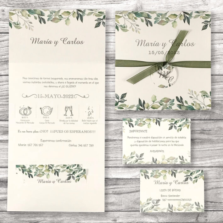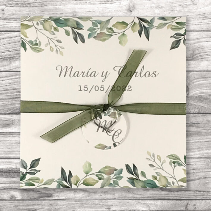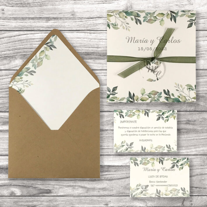 Tamaño de la invitación cerrada 15 x 15 cm en cartulina acuarela de 250 gr.