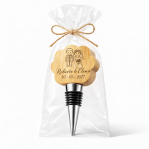Convierte tu boda en un recuerdo inolvidable con un detalle elegante, útil y sostenible. Nuestro tapón de vino de bambú personalizado es el regalo perfecto para sorprender a tus invitados con un recuerdo diferente, práctico y lleno de significado. No se trata solo de un obsequio decorativo, sino de un accesorio funcional que podrán utilizar en reuniones, celebraciones y momentos especiales, recordando siempre vuestro gran día.