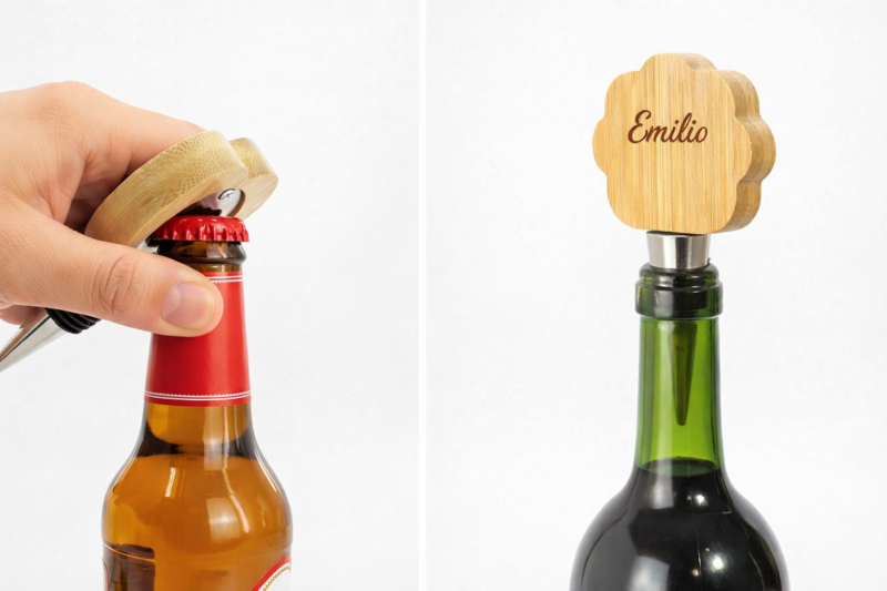 Fabricado en bambú natural ecológico y acero inoxidable de alta calidad, este tapón garantiza un cierre hermético que ayuda a conservar el vino en óptimas condiciones durante más tiempo. Su diseño combina la calidez de la madera natural con la resistencia del acero, logrando un equilibrio perfecto entre estética y funcionalidad. Además, incorpora un abridor metálico integrado en la parte trasera, convirtiéndolo en un accesorio práctico y versátil en cualquier ocasión.